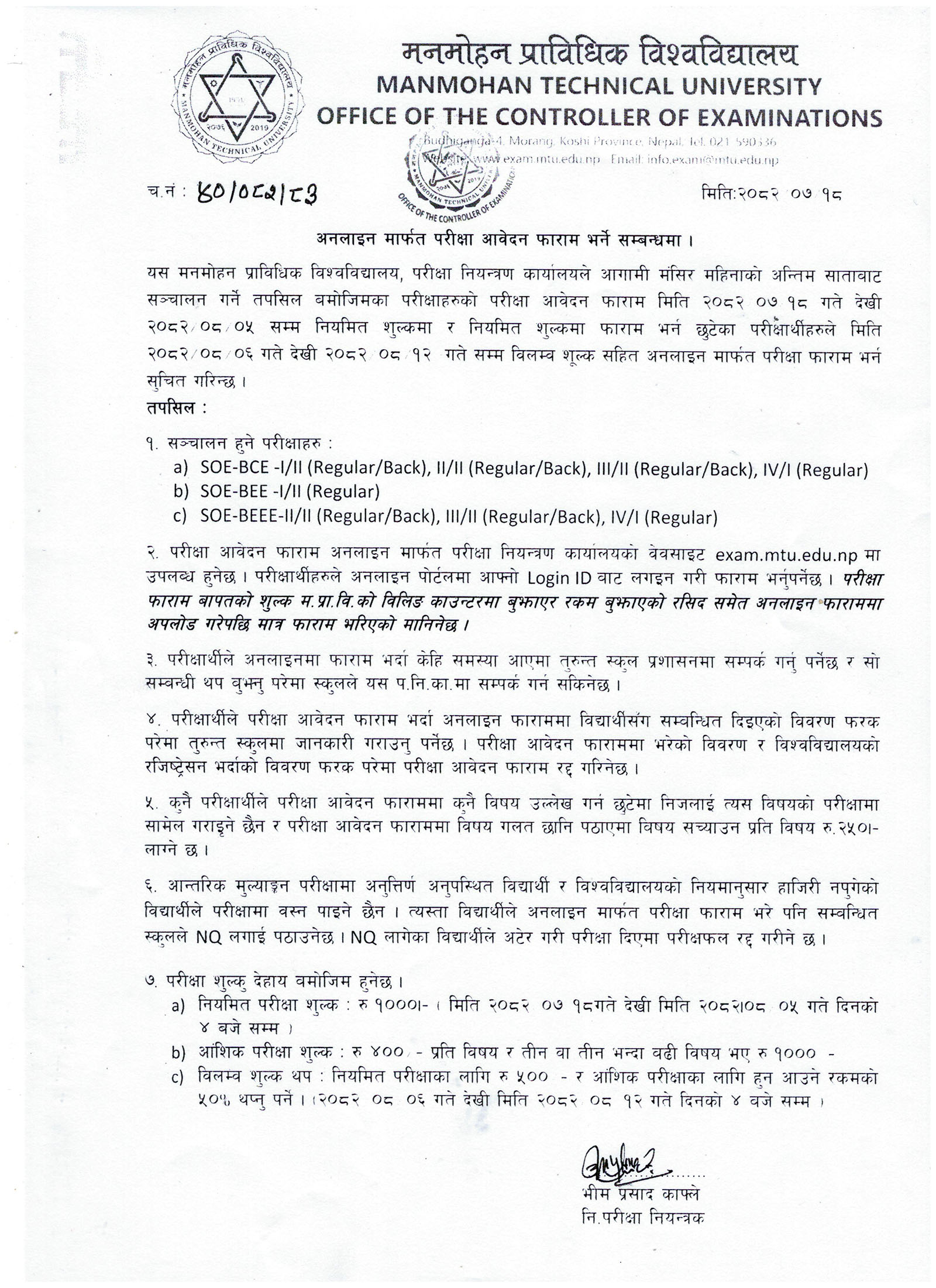 • 2081-07-02 (18 Oct 2024) Exam form Open Notice for BE-I/II,II/II,III/I and B.Pharm. I/II, II/I